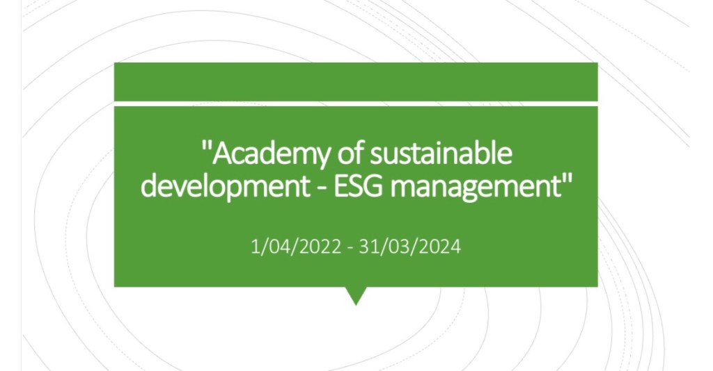 - implementation of an innovative Training Program – Sustainable Development – ESG management in the vocational education sector